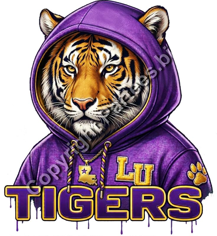 LSU Tigers Mascot Illustration | Purple Hoodie Tiger Graphic